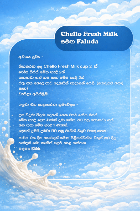 Chello Fresh Milk is pure, nutritious, and deliciously creamy, sourced from carefully selected farms to ensure the highest quality. Rich in essential nutrients like calcium and protein, it supports strong bones and a healthy lifestyle. Perfect for drinking, cooking, or making your favorite beverages, Chello Fresh Milk delivers natural freshness in every sip.